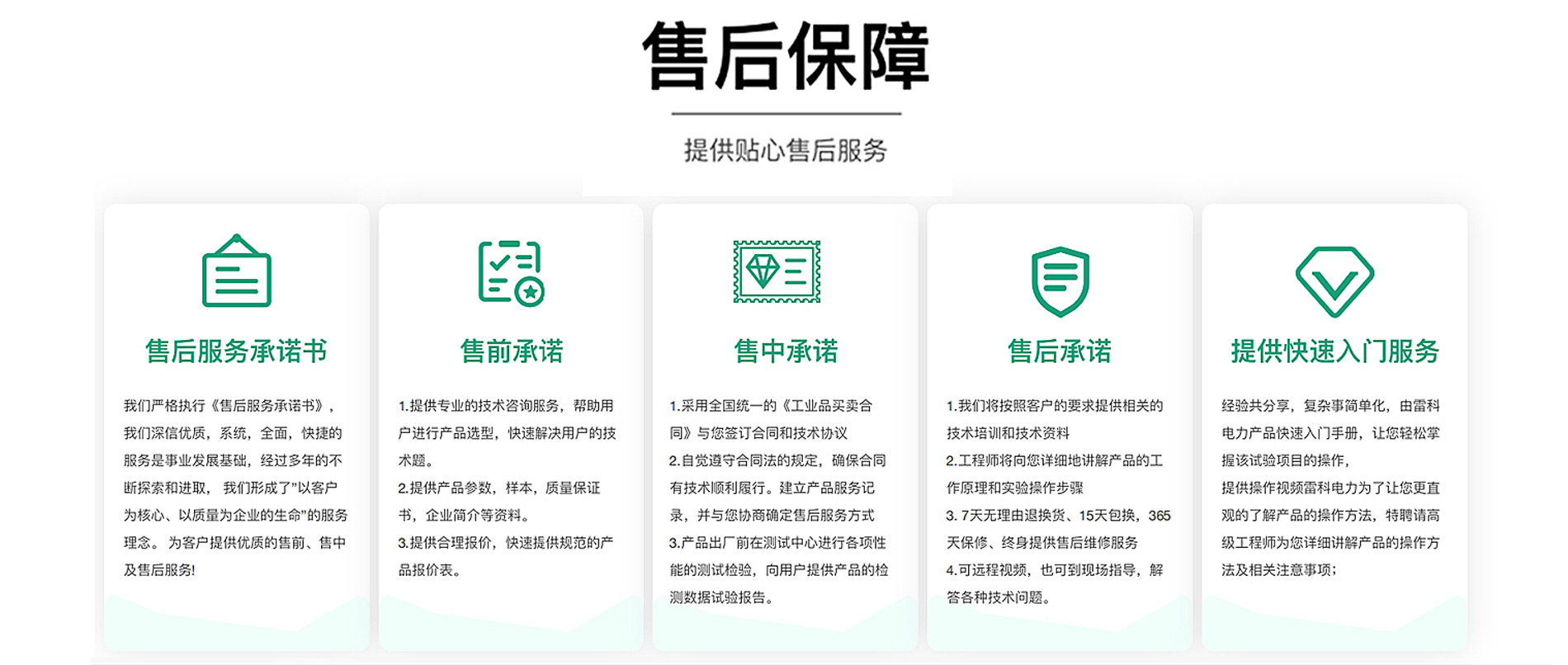 我們嚴格執(zhí)行《售后服務(wù)承諾書》,我們深信優(yōu)質(zhì)、系統(tǒng)、快捷的服務(wù)是事業(yè)發(fā)展的基礎(chǔ)。經(jīng)過多年的不斷探索和進取, 我們形成了"以客戶為核心、以質(zhì)量為企業(yè)的生命"的服務(wù)理念。并以嚴格的管理、過硬的技術(shù)創(chuàng)建優(yōu)質(zhì)服務(wù)為企業(yè)為目標,制 定了"規(guī)范管理制度,嚴格過程控制,保證產(chǎn)品質(zhì)量,達到顧客滿意"的質(zhì)量方針,堅持"以客戶的滿意度"為原則,構(gòu)建良好的銷售服務(wù)體系, 為客戶提供優(yōu)質(zhì)的售前、售中及售后服務(wù)!